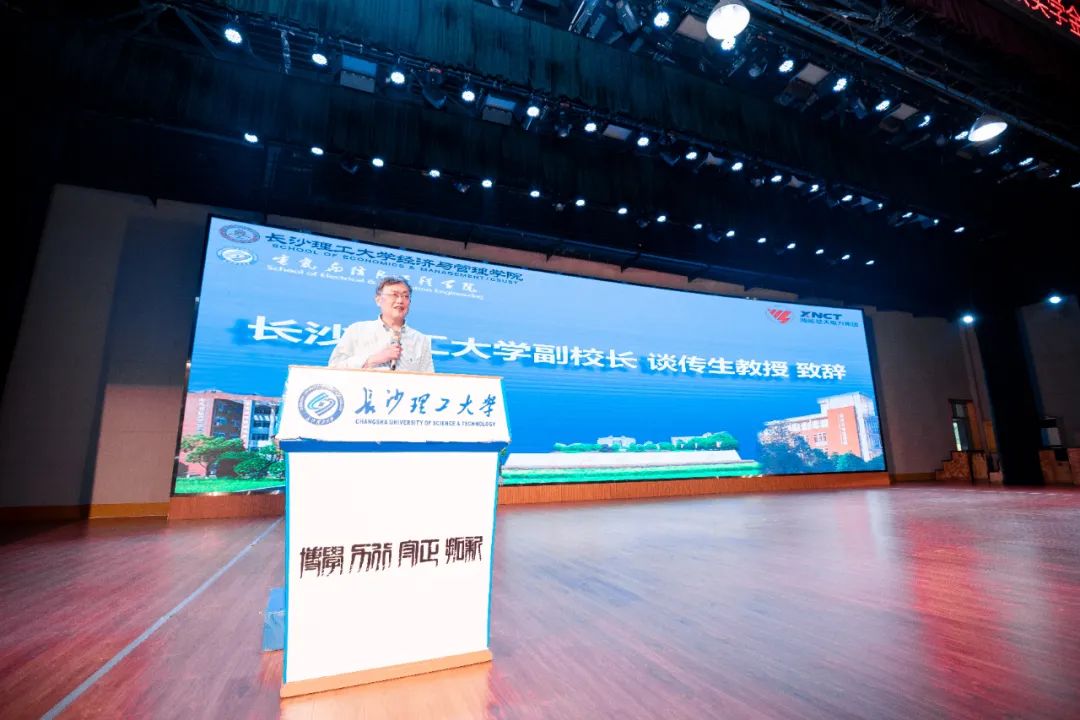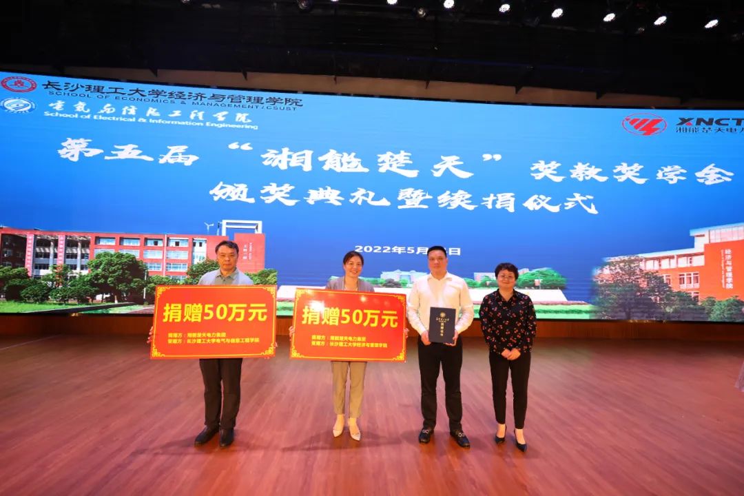 5月24日下午,长沙理工大学第五届“湘能楚天”奖教奖学金颁奖典礼暨教育基金续捐仪式在金盆岭校区五教大礼堂隆重举行。