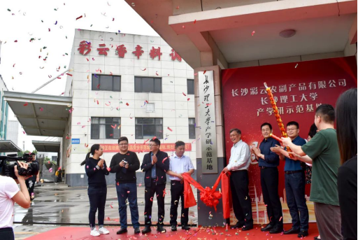 5月24日上午,长沙理工大学与香汇彩云产学研合作成立“香辛料味型挖掘与创新联合研究院”揭牌仪式在长沙彩云农副产品有限公司顺利举行。副校长谈传生、校友总会会长洪源渤、校友中心主任郑延恒、食品与生物工程学院党委书记王建辉,长沙市食品及农产品加工产业链办公室副主任张崇嘉,香汇彩云总经理丁志等有关部门单位负责人出席仪式。