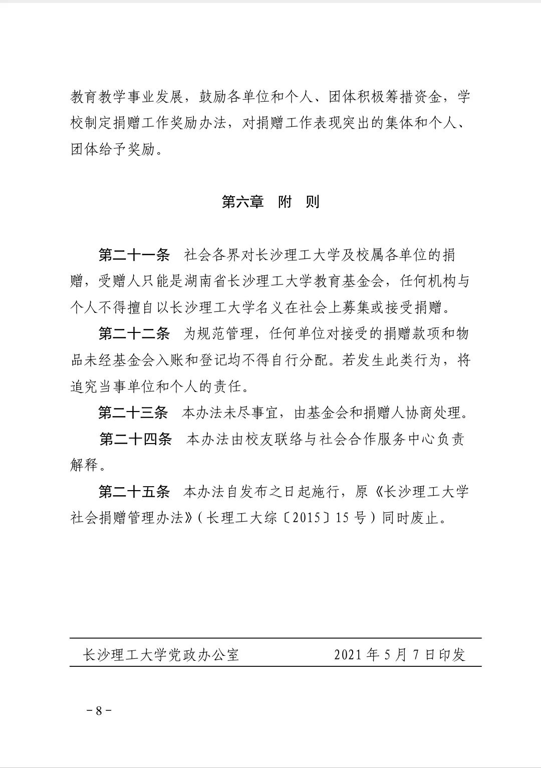 修订后的《长沙理工大学社会捐赠管理办法》(以下简称办法)已经学校2021年3月4日第3次校务会研究同意。