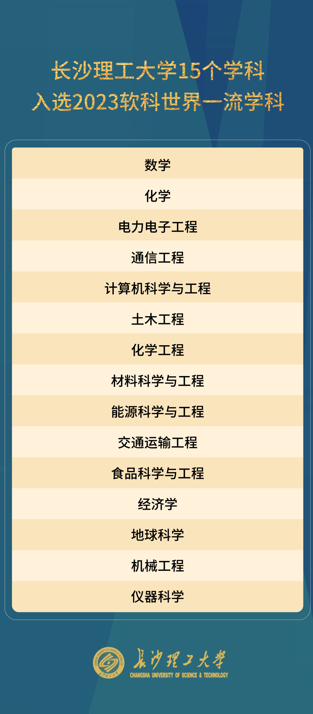 软科世界一流学科!长理入选15个!