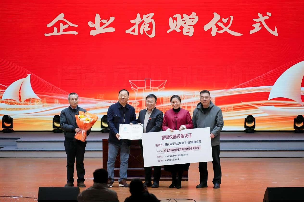 12月25日,电气与信息工程学院93级校友、湖南科比特集团董事长郭贵雄捐赠仪式在“电亮未来,青春启航”——电气与信息工程学院2025年迎新晚会现场举行。校党委委员、副校长张军辉,湖南科比特集团总裁刘庆文、副总裁彭宇,北京双杰电气有限公司副总裁许专、副总经理曾艳等校友代表,学校教育基金会秘书长肖晖,电气学院党委书记丁丹,电网防灾减灾全国重点实验室顾问符慧林等相关单位负责人出席。张军辉在会上重点介绍了杰出校...
