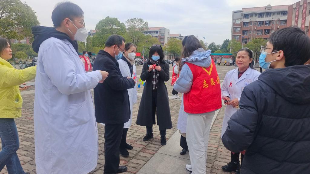 后勤服务保障中心党委书记王明彦,党委副书记兼医院院长陈林峰,校医院党支部书记莫雅元参加了活动。王明彦书记详细了解了活动开展情况并指示要拓宽思路,创新方法,广泛深入地向大学生宣传普及艾滋病防治知识。多年来一直负责指导社团开展防艾活动的卫健办雷鹂老师向王书记介绍,目前雷竞技官网艾滋病防治采取两条腿走路,知识宣教和艾滋病检测并重。除了日常和节点结合,课堂和课外结合,多形式多渠道来做好防艾知识宣教外,在两校区医院设立了检测室开展艾滋病自愿咨询与检测,与长沙市一医院联动指导高危行为的学生做好暴露后预防的介导。使雷竞技官网防艾工作从单一知识宣教向知识宣教、高危行为干预和自愿咨询检测相结合的良好局面转变,大大促进雷竞技官网防艾工作,为大学生身心健康提供良好的保障。