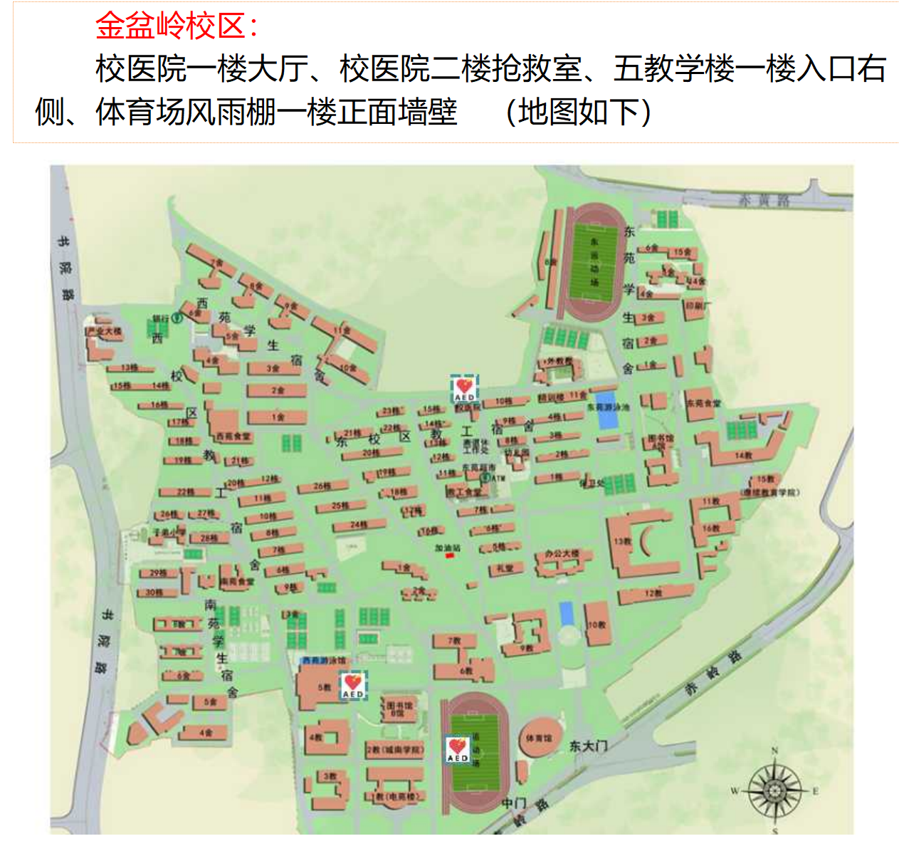 值得一提的是,为打造更安全的校园环境,近年来卫健办与社区、省市红十字会、各级卫生行政主管部门积极沟通申报,推进校园急救设备的配置工作,在两校区多个重点区域安装了AED,专门制作了AED的安装地图和使用教学视频,通过学校官方微信公众号、各院系新媒体平台等进行传播,提高了师生员工的知晓率和使用技能。