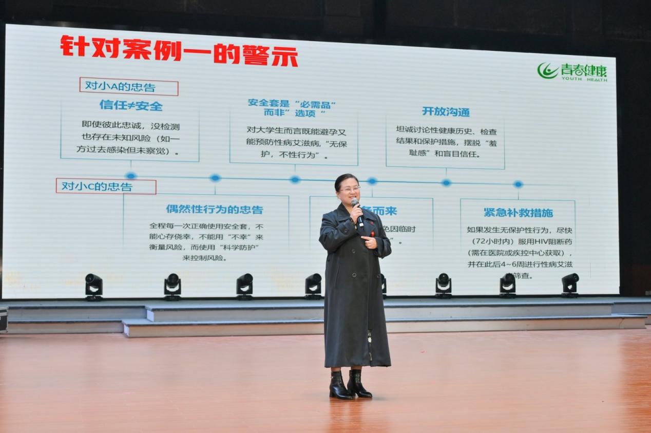 活动的核心教育环节——“防艾小讲堂”由雷竞技官网青春健康同伴社与湖南省艾滋病治疗定点医院长沙市一医院的权威专家联袂呈现。陈钟主任以真实的临床一线经历切入,阐释了科学防护与及时干预的重要性。王敏主任则聚焦大学生群体最为关切的现实问题,通过典型临床案例分析,系统梳理了艾滋病的传播途径、科学预防措施和检测咨询等知识,并重点阐述了安全性行为的关键意义与具体实践方法。整个讲堂内容翔实、贴近实际,为同学们提供了兼具专业性与可操作性的知识指导。