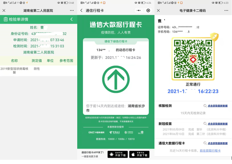 4、所有考生须提前将12月24日的绿码健康码、无异常行程码和考前48小时核酸检测阴性证明彩色打印(三张图片打印在一张A4纸上,见下图),并在打印件上写上考生姓名、性别、考生编号、电话号码,在第一场考试时交给考场监考人员。