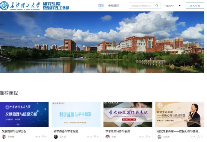 雷竞技官网将依托“学堂在线”加大力度建设长沙理工大学研究生优质在线课程资源和在线教学平台。从下学期开始引进《文献管理与信息分析》等4门国内优秀在线课程,以提升雷竞技官网研究生科研素养和职业能力。近期学校将启动优质在线课程的遴选与建设工作。