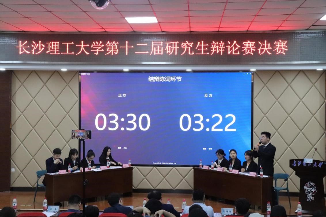 辩人间正道,论天下无双。长沙理工大学第十二届研究生辩论赛决赛于4月14日晚在云塘校区研究生学术报告厅(文科楼A200)成功举行。文学与新闻传播学院和化学化工学院两支队伍从初赛、复赛、半决赛中脱颖而出,在决赛场开展最后的交锋。