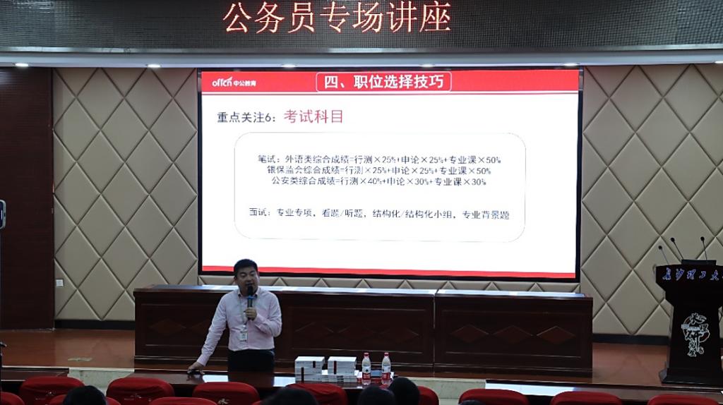 为了应对愈发严峻的就业形势,长沙理工大学研究生会特举办考公考编系列讲座活动。本次讲座共开展四场,第一场综合分析就业形势、各类公职考试的整体考情和报考方向,随后三场分别围绕公务员、事业编、银行三种公职考试进行了具体的全方位的解读。截止5月18日,四场讲座均已结束。