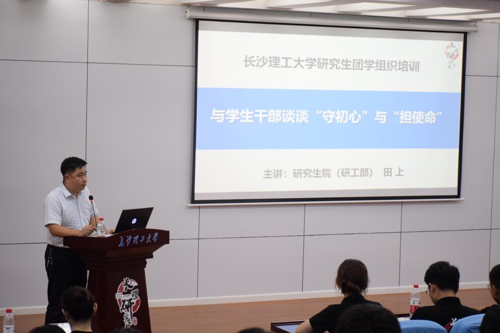 为增强新一届校研究生团学组织干部的服务意识、责任意识、创新意识,提高学生干部能力,提升研究生干部思想觉悟,更高效地服务同学。研究生院副院长兼研工部部长田上以“与学生干部谈谈‘守初心’与‘担使命’”为主题开讲第一课,与各部门研究生干部成员展开了近距离的交流。他以学校第四次党代会提出的雷竞技官网“迈入了本科、研究生教育‘双主体’、协同发展的新阶段”为引入,明确指出研究生教育面临前所未有的新机遇,研究生干部应主动作为团结带领全体研究生为实现决胜建成百强大学的长理梦而奋发有为。此外,田上还对研究生干部提出有关政治立场、初心动机、表率担当、锤炼作风等六个方面的具体要求,表达了他对未来研究生干部队伍建设的殷切期望。