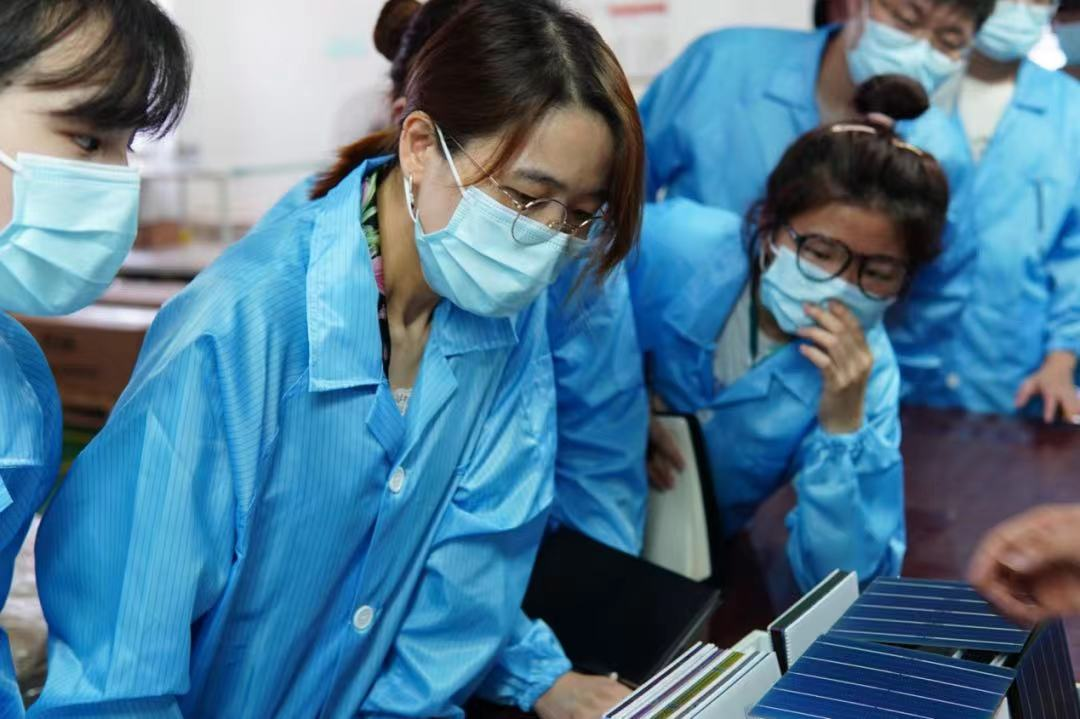 (实践团下生产线,了解光伏技术发展)