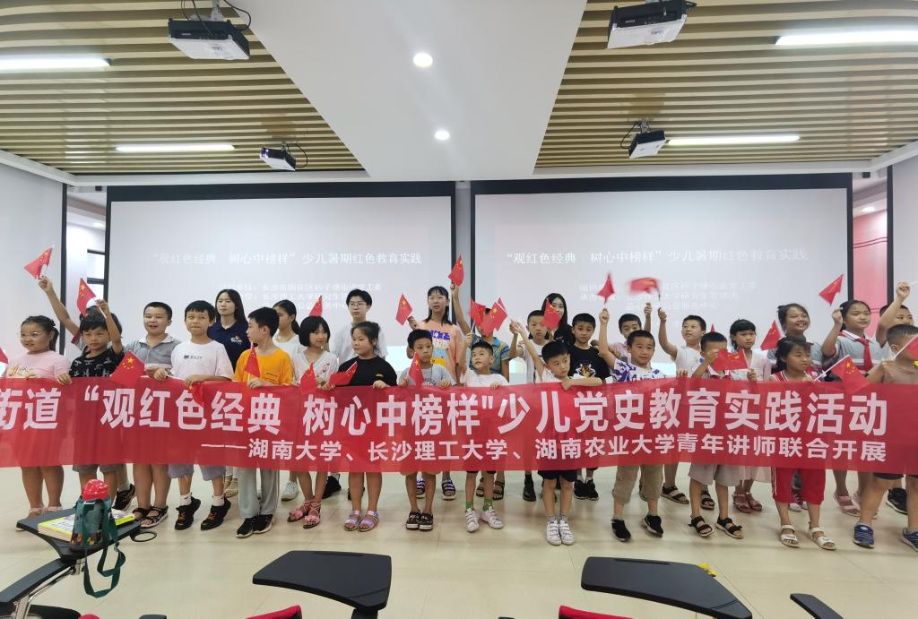 近日来,长沙理工大学与湖南大学、湖南农业大学联合开展把党史教育送进社区的少儿暑期红色教育实践,通过把“伟人故事”和“红色影片”相结合,形式新颖,内容丰富,受到了社区工作人员、学生和家长的一致好评。