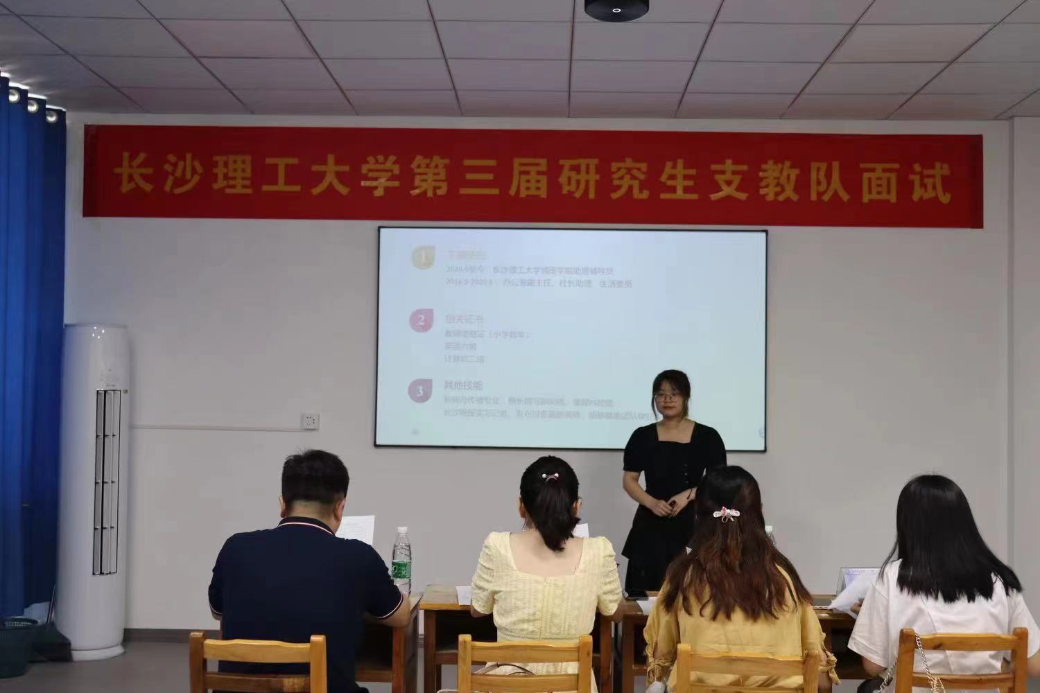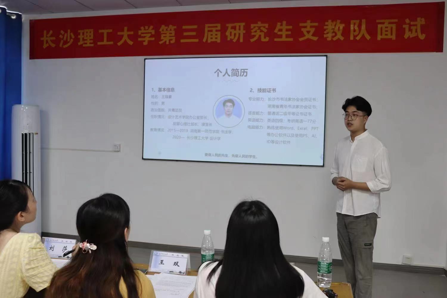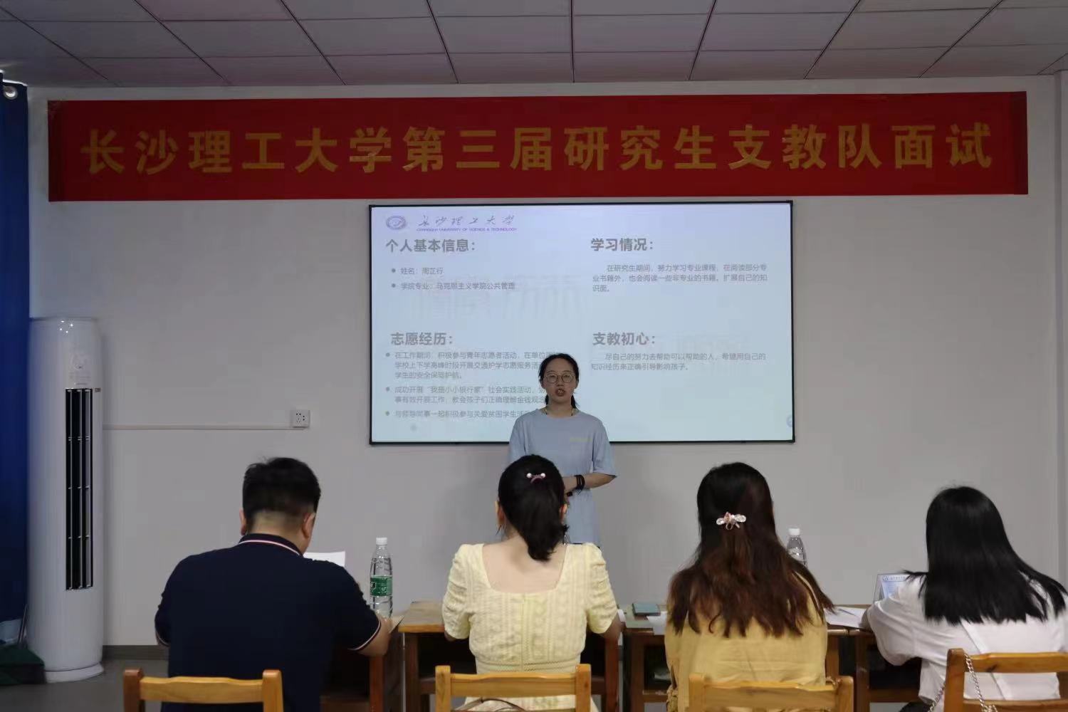候选人们围绕支教初心、志愿经历、学习情况、教学经历、个人爱好等方面进行了个人展示,评审老师们根据学生的具体情况进行了针对性提问,并从思想认识、教学能力、志愿经历、仪表仪容等方面予以了全面考察,最终确定10名同学成为长沙理工大学第三届研究生支教队的成员。