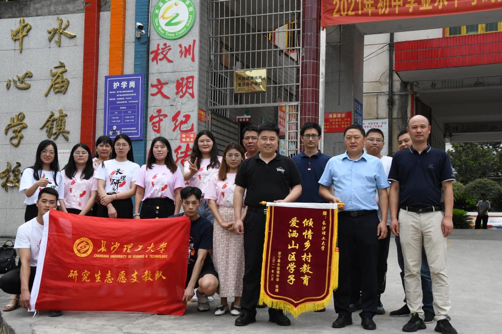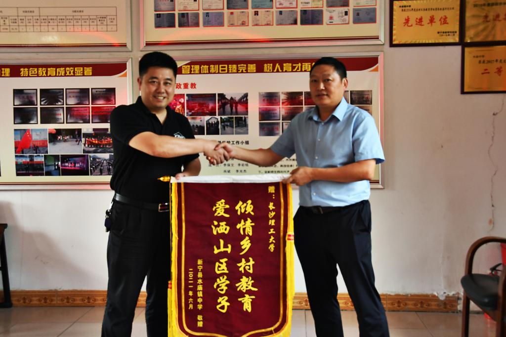 送别仪式最后,水庙镇中学向长沙理工大学赠送锦旗表示感谢。