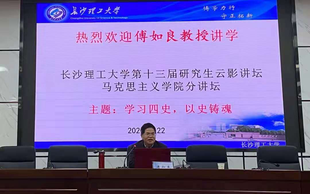历史是最好的教科书,更是研究生三观培育和品格塑造的重要载体。交通运输工程学院张起森教授以“传承红色基因,弘扬交通精神”为题进行了专题讲座。他分享了自己求学、入党和参与祖国交通建设的经历,并激励研究生要不断提升自我,保持绝对的专业自信、发展自信,开拓创新、迎难而上,在“交通强国”中贡献新的力量。马克思主义学院傅如良教授在学习报告中强调了新时代学习四史的重大意义、重要方法和重要启示,希望研究生们把“学”与“思”统一来、“学”与“悟”统一起来、“学”与“践”统一起来,贯通学思践悟,把使命永担在肩。