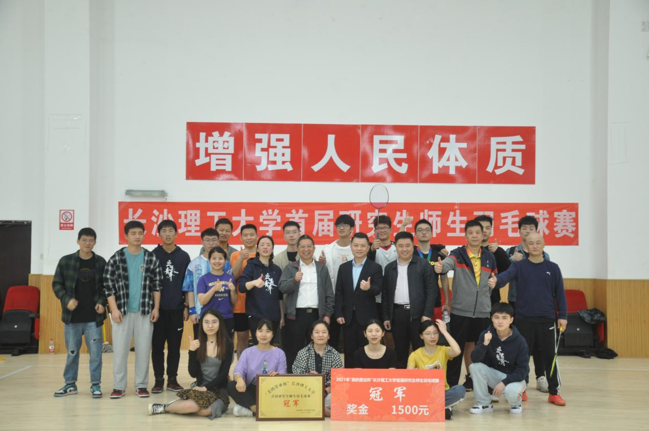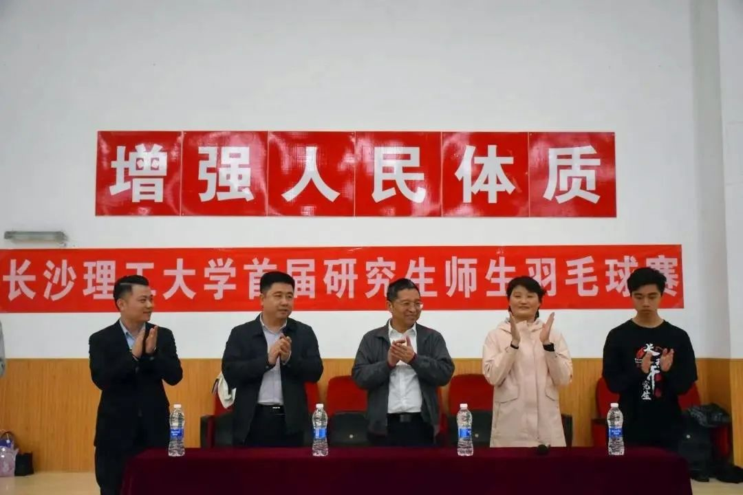 5月23日下午,“美的置业杯”长沙理工大学首届研究生师生羽毛球赛在云塘校区羽毛球馆落下帷幕。副校长胡永乐教授、研究生院副院长兼研工部部长田上、本次赛事技术代表涂伟仕老师以及冠名单位美的置业湘赣区域人力资源总监邹正出席了总决赛及闭幕式。