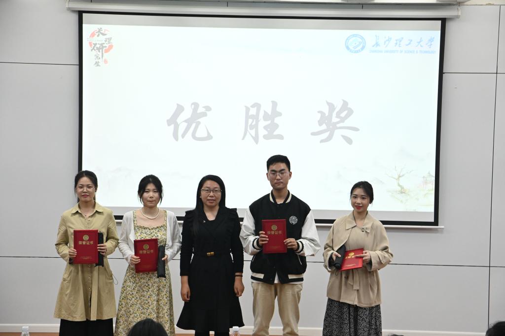 最后通过评委们的打分和现场观众投票,来自文新学院的赵冉获得一等奖;获得二等奖的是来自马克思主义学院的张卉洁、付圣莹;获得三等奖的分别是来自法学院的李恋、马克思主义学院的舒彭和水利与环境工程学院的宋楚轩;来自外国语学院的王夏星、文新学院的曾洁和马克思主义学院的徐浩、杨麒鸿获得优胜奖。
