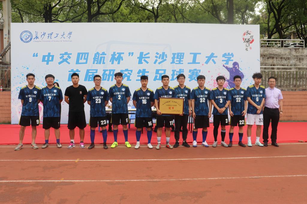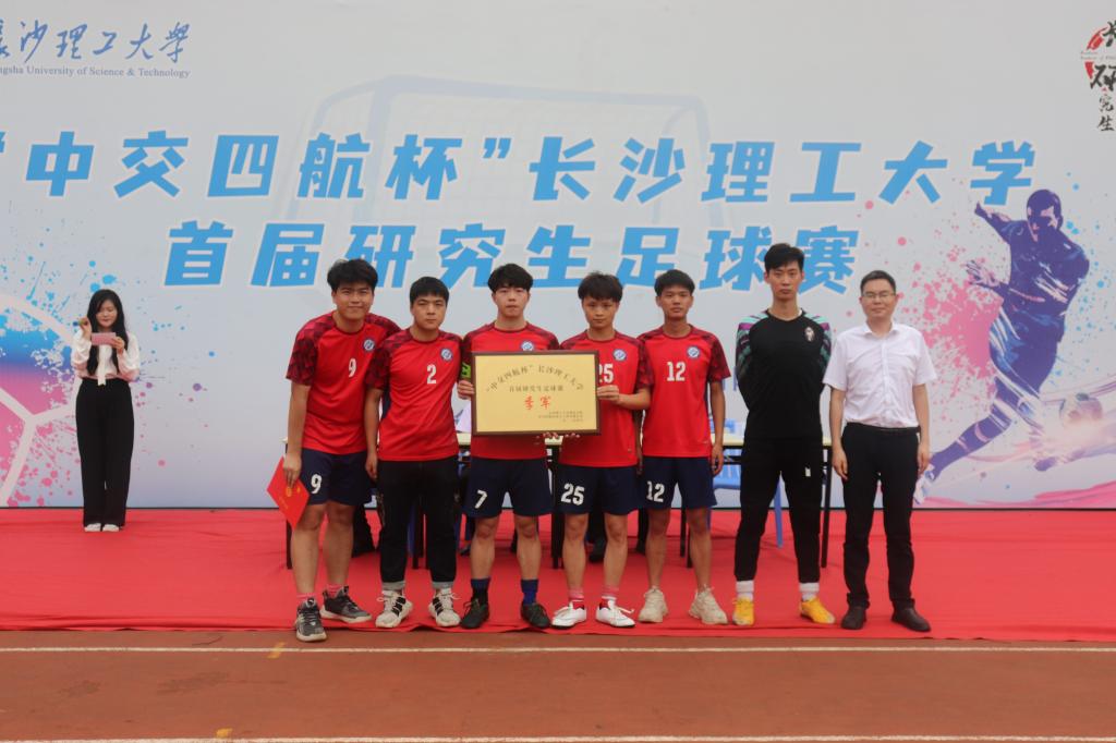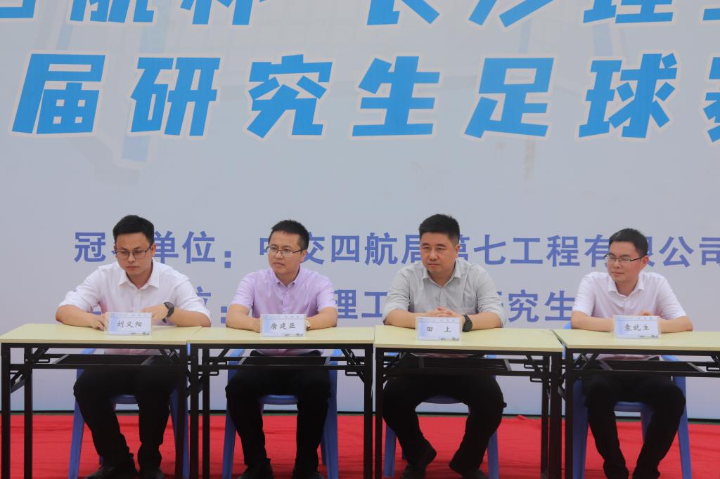 4月24日下午“中交四航杯”长沙理工大学首届研究生足球赛在金盆岭校园田径场完美落幕。经过一周的激烈角逐,经济与管理学院、电气与信息工程学院、汽车与机械工程学院和能源与动力工程学院四支劲旅挺进决赛,展开最后的角逐。中交第四航务工程局有限公司湖南分公司总经理唐建亚、中交四航局七公司湖南分公司经理袁就生、中交四航局七公司湖南分公司执行经理刘义阳和校研究生院副院长兼研工部部长田上等出席。