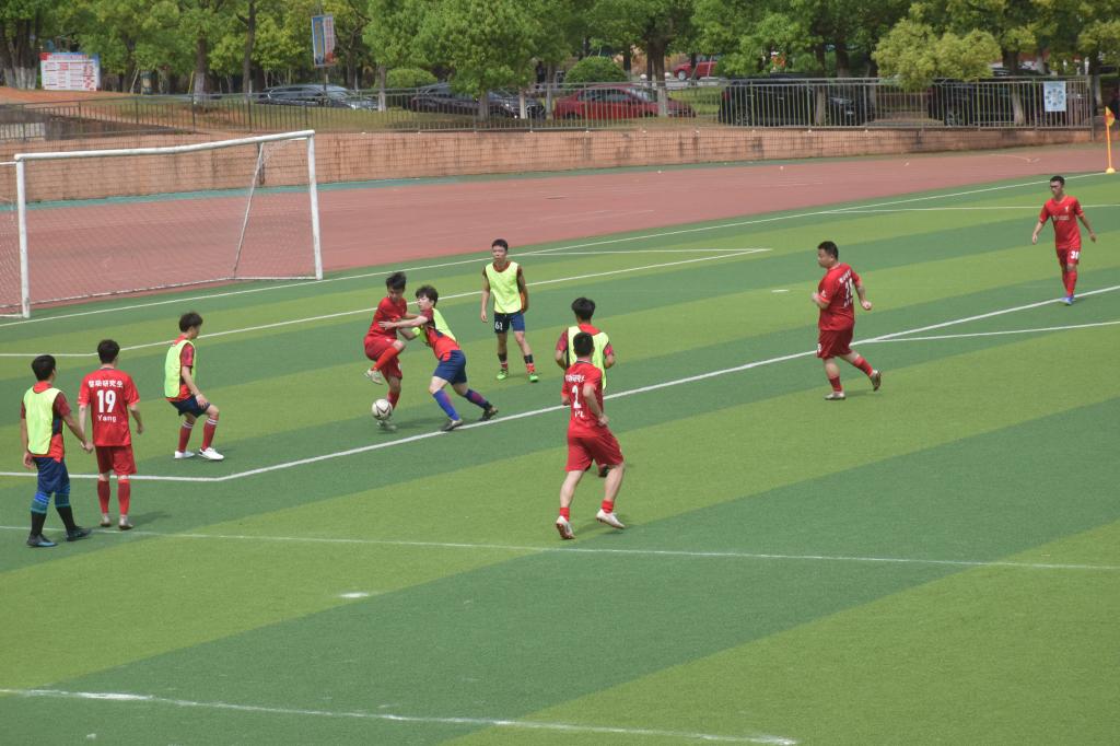 决赛的比拼更加激烈。上半场,经济与管理学院队率先攻入一球,此后电气学院门将一直牢牢控住球门,未让对方抓住机会。下半场,电气学院中场的一次失误,让经济与管理学院的明星球员易俊杰抓住机会再度破门,为球队再次拿下一分。随后经管学院队优势渐显,连入数球,最终以4比1的比分锁定胜局,夺得长沙理工大学首届研究生足球赛冠军,