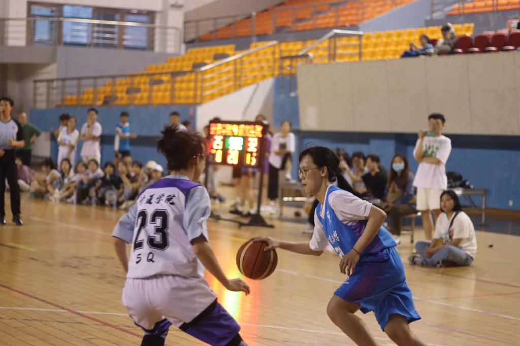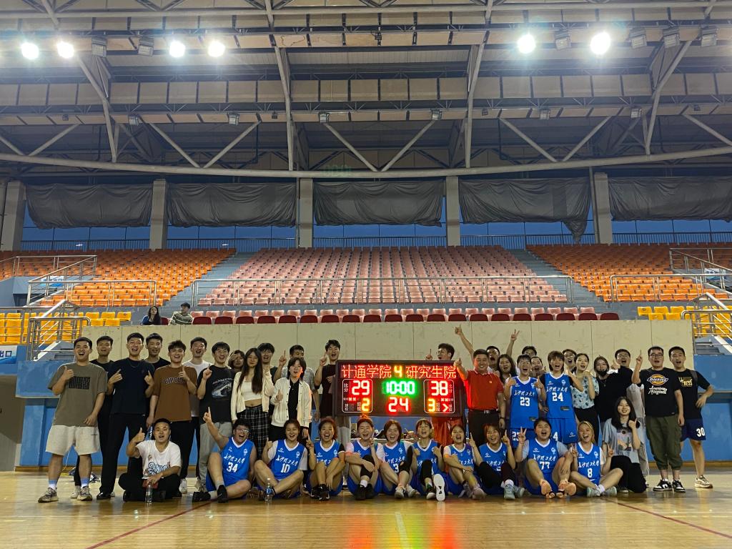 随着裁判员一声哨响,比赛开始!研究生女篮3号拿到球权,传给队友后持球杀入内线上篮打进,拔得头筹,在心理战上处于领先优势,随后,研究生女篮犯规,计通学院罚球进一,拿下首分,最后以研究生女篮9:4开局暂时领先。第二节开始,双方迅速进入状态,研究生女篮主动出击未果,双方你来我往,积极应战,面对研究生女篮的猛烈攻势,计通学院全神贯注,奋力拼搏,无奈研究生女篮手感火热,强势回应,将攻防拉满,不给对方进球的机会,研究生女篮延续胜利,以18:12结束第二节。易边再战,来到第三节,计通学院吹响追分的号角,先利用罚球得分,随后研究生女篮快攻上篮进球得两分,但计通通过几次次远投进球,实现反超,双方陷入焦灼,短暂休息后,研究生女篮调整状态,以28:25,研究生女篮以微弱优势领先。最后的角逐上,研究生女篮不断将比分拉大,最后一分钟,研究生女篮稳扎稳打,最终以38:29赢下比赛,夺得长沙理工大学第十七届理工杯女篮组冠军。