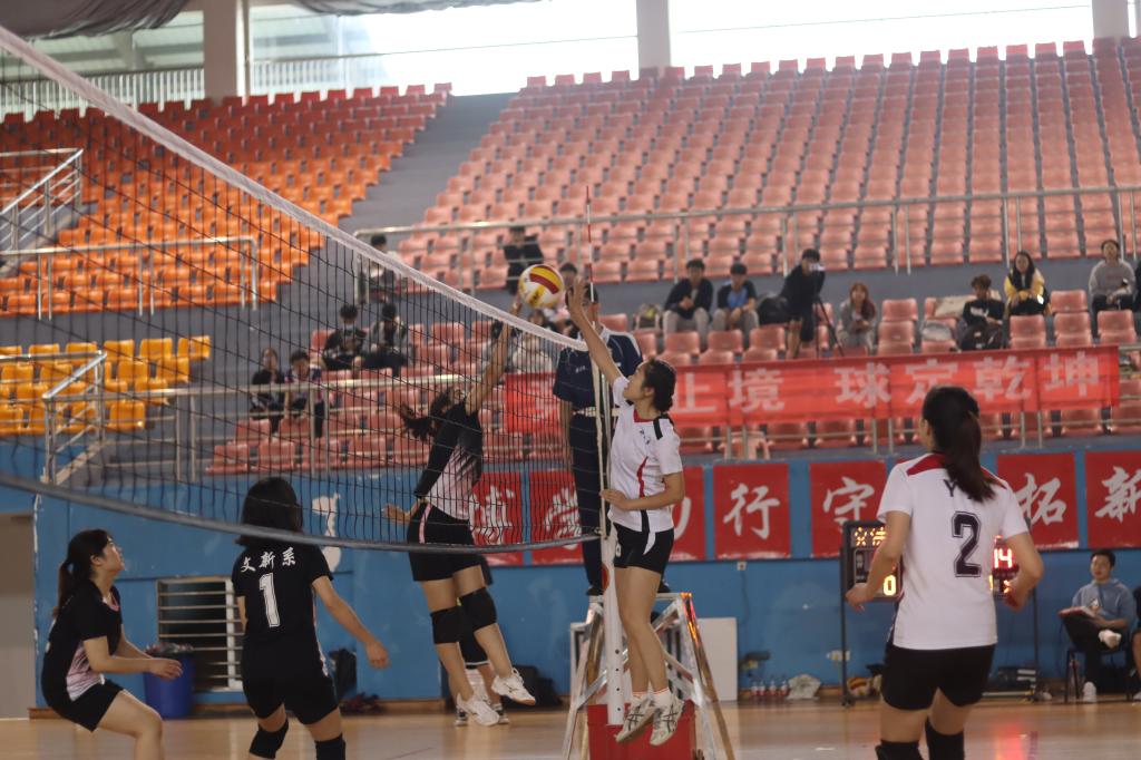 决赛现场,鼓声石破天惊,加油呐喊的余音回荡整个赛场。研究生院与文法学院女排决赛随着裁判员一声哨响正式开始。研究生女排选手一个快攻扣杀球取得开门红,而文法学院也不甘示弱,比分互相咬的很紧。研究生女排2号选手发球,威力十足,打乱文法学院战术阵脚导致一传、二传频频失误,研究生女排连续赢得6个球,取得16:10比分优势。女排队员气势恢宏,打的气血满满,顺利拿下第一局比赛。双方交换比赛场地进行第二局比赛。研究生院女排配合默契,洞察对方站位缺陷,打出一个又一个精彩好球,一直处于领先优势。而文法学院女排在大比分落后的情况下进行两次暂停,调整战术,她们打出不气馁、不放弃的运动精神,一度追平比分,但依旧抵抗不住研究生女排正面的扣杀球和巧妙的吊球。最终研究生女排连下两局,夺得冠军,实现了“三连冠”!