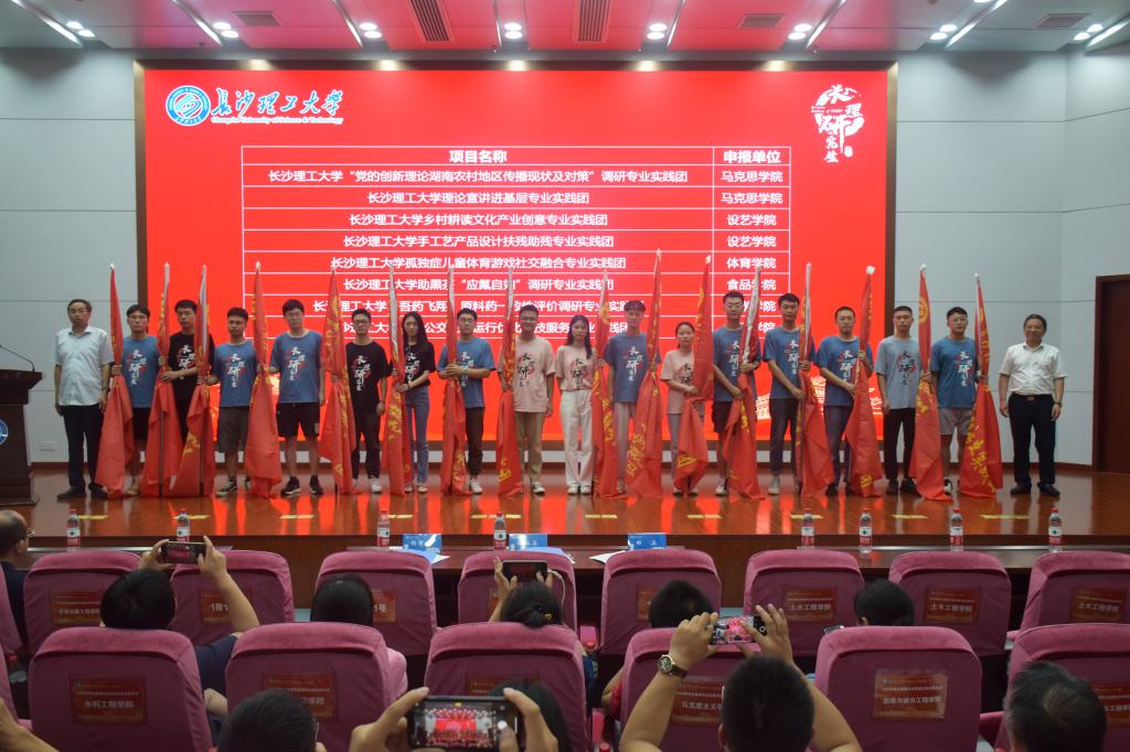 随后,胡永乐等与会领导为49支暑期专业实践团队进行了授旗。
