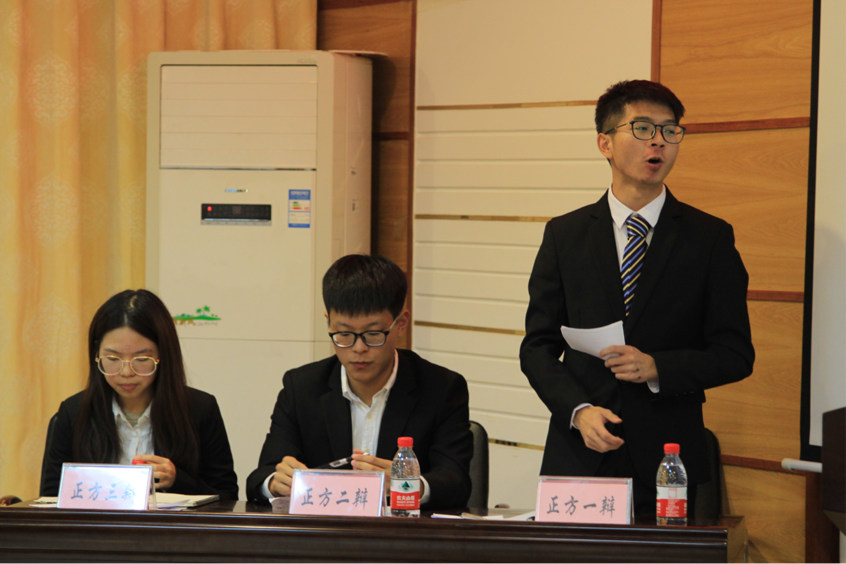 水利工程学院围绕“矛盾的统一性和斗争性”指出:竞争建立了主体与父母、同学、同事之间的关系。反方则围绕“合作是人类繁衍的基础,也是竞争的前提”来表明人际关系的基础是合作。攻辩阶段双方你来我往,非常激烈,不相上下。赛后,董艾辉老师进行了点评:她首先表扬了六位辩手,称赞他(她)们睿智、逻辑清晰、有风度,能够抓住自己有益的方面自圆其说,但双方存在举例不恰当的问题。并提到“竟合”概念,在人类共同体阶段,竞争与合作不可分开。