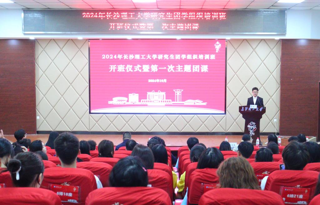 10月15日,长沙理工大学2024年校研究生团学组织培训班开班仪式暨第一次主题团课在云塘校区文科楼A200举行。研究生院院长何忠明、研究生院副院长兼研工部部长闾兰老师、研究生思政教育管理科科长吕倩老师、研究生思政教育管理科李佳美老师出席本次活动,由校研会执行主席谢林员主持仪式,研究生会全体成员参加本次团学培训。