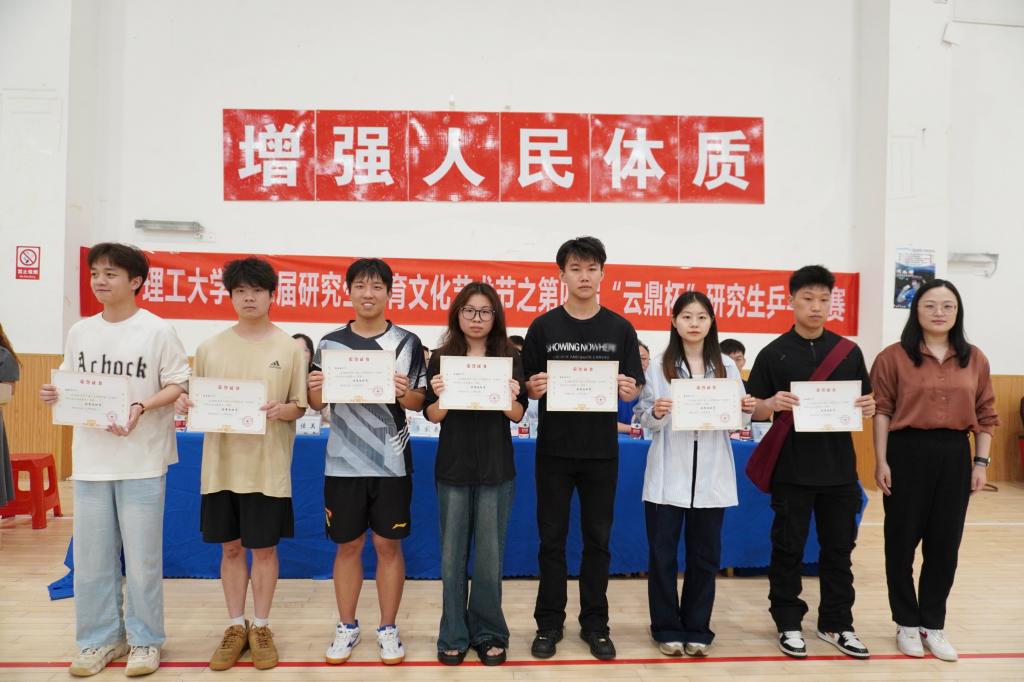 5月25日下午,雷竞技官网第四届“云鼎杯”研究生乒乓球赛在云塘校区体育馆负一楼篮球场圆满落幕。化学与医药工程学院党委副书记李家春,数学与统计学院党委副书记郑忠辉,导师代表匡尹杰,研究生院思政教育与管理科李佳美,研究生辅导员江洁、彭峥、王志亮出席,各学院代表队参与此次闭幕式。