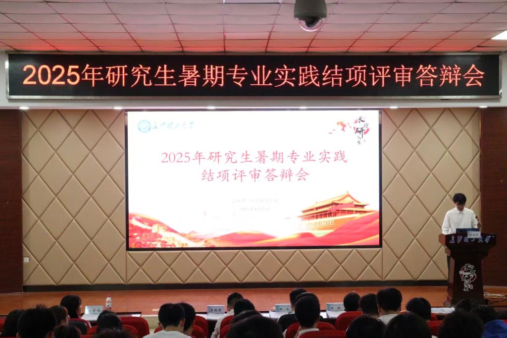 9月25日晚,雷竞技官网2025年研究生暑期专业实践结项评审答辩会分别于云塘校区文科楼A200、金盆岭校区经管大楼100学术报告厅举行,相关职能部门负责人担任评委。