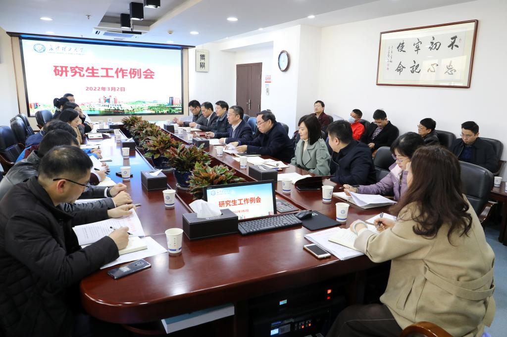 3月2日上午,学校在云塘校区一办公楼六会议室召开本学期研究生教育工作会议。各培养学院分管副院长、研究生干事、研究生教育督导团专家、研究生院科级以上工作人员参加了会议。会议由副校长胡永乐主持。