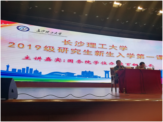 9月18日下午,国务院学位办欧百钢处长应邀在金盆岭校区五教大礼堂为研究生新生上“第一课”。研究生院全体老师、各培养学院新进导师、研究生辅导员、2019级研究生共同聆听。研究生院院长管德清主持“第一课”。