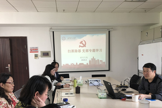 4月24日上午,研究生院党支部在一办B202召开扫黑除恶支部专题学习,研究生院全体党员参加了学习,支部书记管德清主持本次会议。