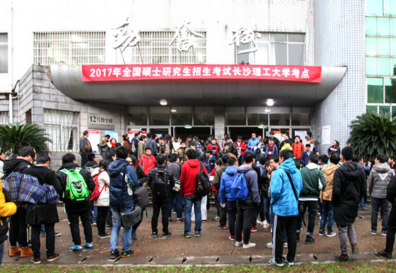 12月24日—26日,雷竞技官网2017年全国硕士研究生招生考试在金盆岭校区1号、12号和13号教学楼进行。今年共有4578名考生报考雷竞技官网全日制和非全日制硕士研究生,其中2613人在雷竞技官网考点参加考试。