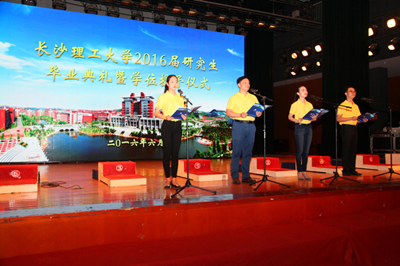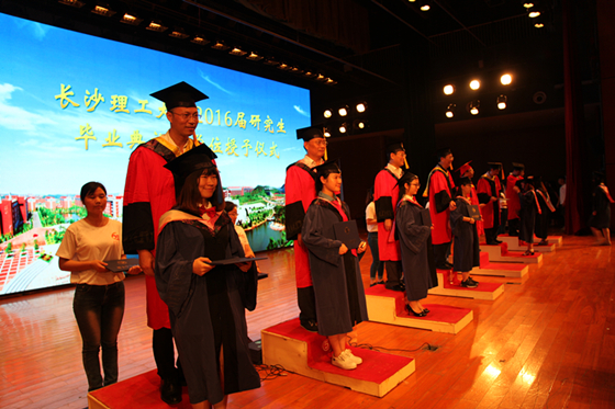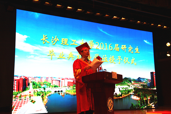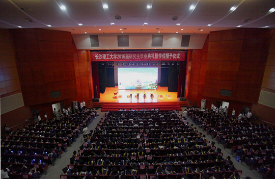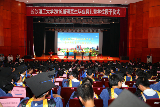6月24日下午,长沙理工大学2016届研究生毕业典礼暨学位授予仪式在云塘校区大会堂隆重举行。校党委书记付宏渊、校长赖明勇、副校长杨伟军、叶泽、黄立宏、谈传生、纪委书记胡永乐、副校长蒋昌波等校领导,相关部门负责人和各培养学院党政主要负责人、副书记、分管副院长、导师代表与912名毕业研究生欢聚一堂,共同见证这一美好时刻。