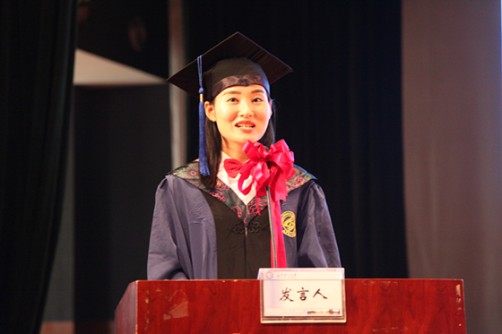 毕业生代表、文法学院2016届研究生杨倩雯回忆往昔,表达了对母校、对导师、对同学们的依依不舍,还代表毕业研究生们对老师表示最诚挚的感谢和最崇高的敬意。最后她饱含深情地说:“祝愿母校硕果累累,再书华章;祝愿恩师身体健康,桃李满疆;祝愿同窗宏图大展,奋发向上!”