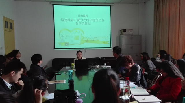 “外物之味,久则可厌,读书之味,愈久愈深。”4月7日下午,长沙理工大学马克思主义学院2016年度研究生读书报告会在金盆岭校区4教503举行。报告会由学院副院长易显飞教授主持,学院各专业研究生积极参加了此次读书报告会。