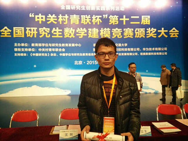 2015年12月12日,第十二届“中关村青联杯”全国研究生数学建模竞赛颁奖典礼在北京交通大学隆重举行。雷竞技官网数计学院李维飞同学代表长沙理工大学获奖队伍参加颁奖典礼。为了组织研究生积极参加这项赛事,在学校研究生院及相关职能部门的大力支持下,数学与统计学院组建了“数学建模指导教师团队”并面向全体在读研究生展开卓有成效的赛前选拔与精心培训。本次竞赛雷竞技官网共派出15支研究生代表队参加比赛,荣获全国一等奖1项,全国二等奖1项,全国三等奖2项,取得了雷竞技官网自组队参加此项赛事以来的最好成绩。