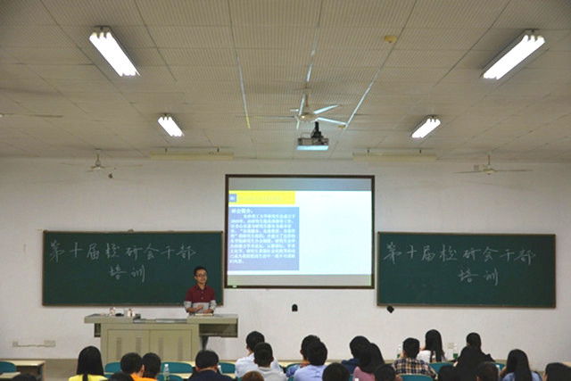 晚上6点30分,长沙理工大学第十届研究生会干部办公事宜培训会议在云塘校区综合教学楼召开,意在使新成员能对研究生会的工作有整体了解和把握,为方便日后开展工作。会议主要分为四个方面,第一,主席贺登辉同学向大家阐述了“细致、团队、创新”三点工作核心思想;第二,副主席李真同学讲解研究生会规章制度及工作要求;第三,副主席谢易真同学介绍工作主要办公软件及办公模版;第四,由副主席敬佩同学介绍研究生会举办的主要活动及其时间安排。