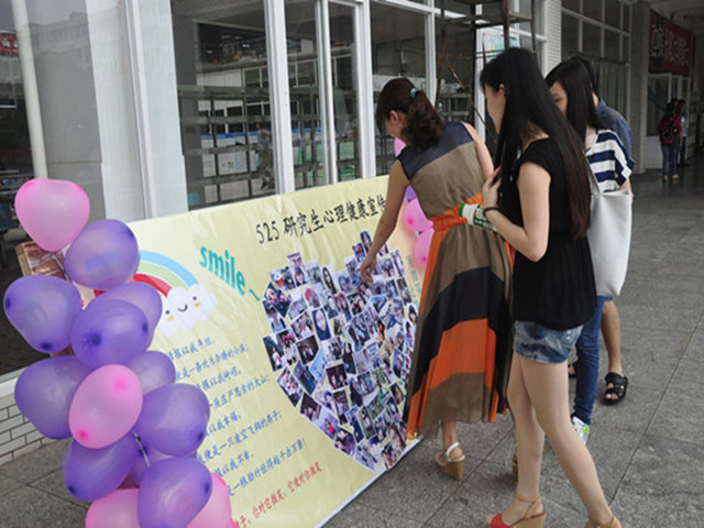 五月的校园虽然一直阴雨绵绵,但活动展板上每一张笑脸展示着雷竞技官网各院学生乐观积极向上的精神面貌,同时也为同学们注入一股正确面对困难和微笑面对生活的正能量。每个去到活动现场的同学还收到了一份印着“笑对生活”的心理健康宣传书签,上面的一句话令人印象深刻:生活是一面镜子,你对它微笑,它便对你微笑。希望能借此提醒研究生学子,遇到困难也不要忘记微笑。