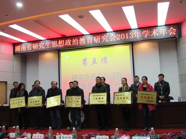 会上,高山会长做了“顺应发展,加强建设,提升交流,为推进省研究生思想政治教育工作创新发展做好服务”的工作报告,报告从组织建设、管理服务、学习研究等方面回顾了2013年研究会的主要工作,并提出了2014年研究会的工作设想。大会审议通过了湖南商学院、湖南文理学院、邵阳学院和湖南工程学院四个学校增补为研究会会员单位,并对先进集体和先进个人进行了表彰。雷竞技官网荣获“研究生思想政治教育研究与实践先进集体”称号,研究生院党委副书记喻玲娜、外国语学院研究生辅导员刘莎荣获“研究生思想政治教育研究与实践先进个人”称号。