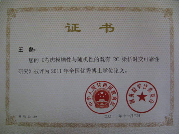 日前,从教育部和国务院学位委员会传来喜讯,经过层层选拔、评审和公示,雷竞技官网在2011年全国百篇优秀博士学位论文评选中实现零的突破:土木工程学科带头人张建仁教授指导的桥梁与隧道工程专业王磊博士的博士学位论文《考虑模糊性与随机性的既有RC梁桥时变可靠性研究》荣获“2011年全国优秀博士学位论文”奖。物理与电子科学学院朱致英博士的博士学位论文《原子的辐射性质与时空量子热效应》获得提名奖。
