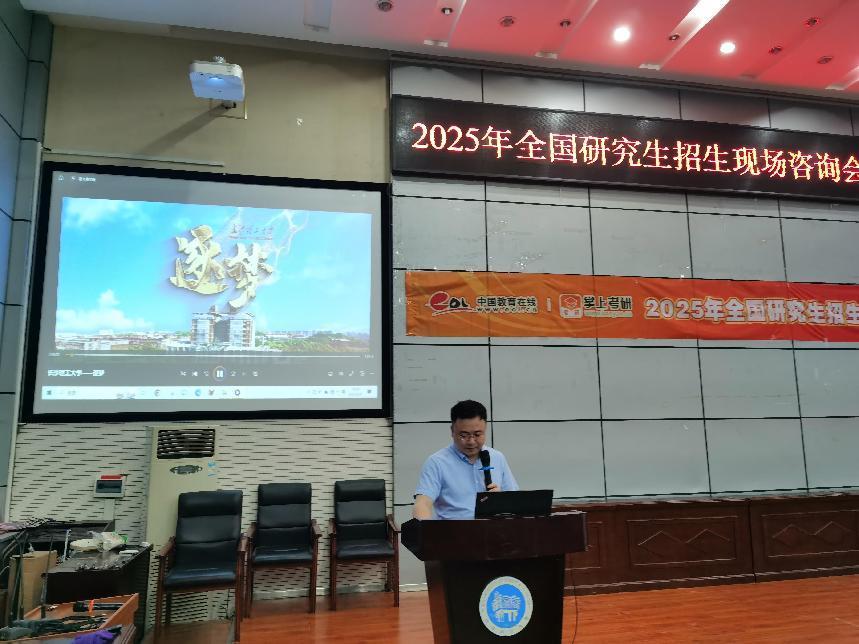 曾铃副院长以“逐梦长理”为主题,通过宣传视频和图文并茂的ppt向到场师生介绍了长沙理工大学的历史发展、师资力量、特色学科、研究生招生计划、奖助学金等情况,并现场与学生们进行面对面的咨询讲解。