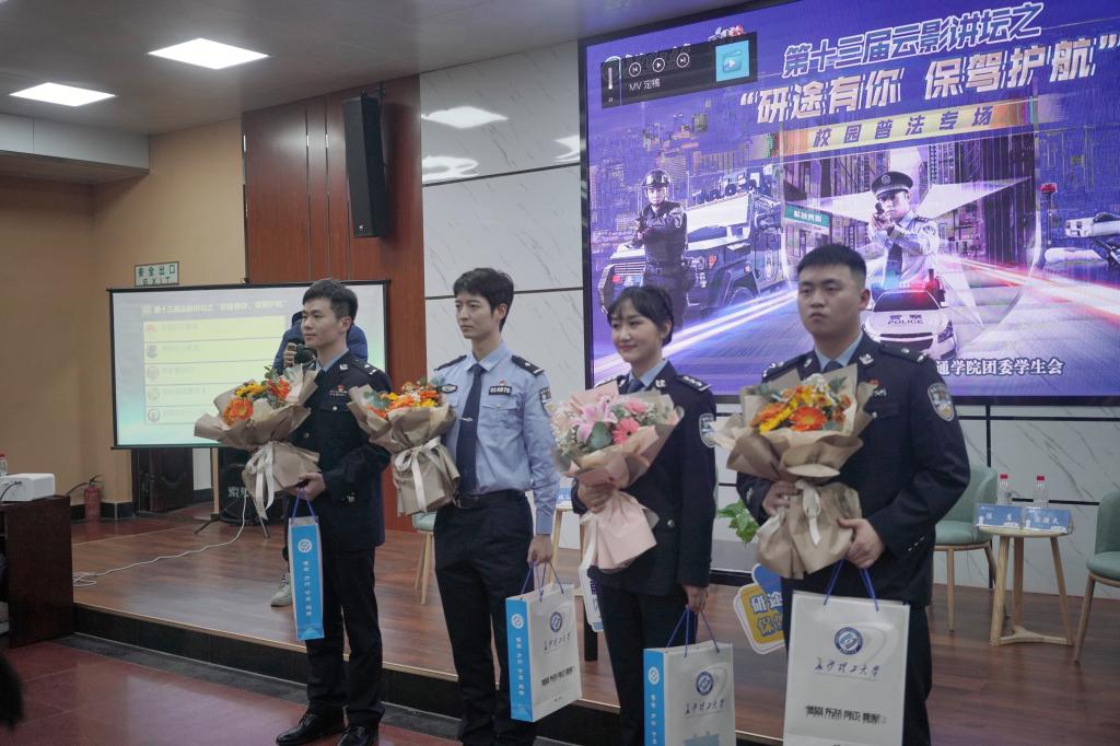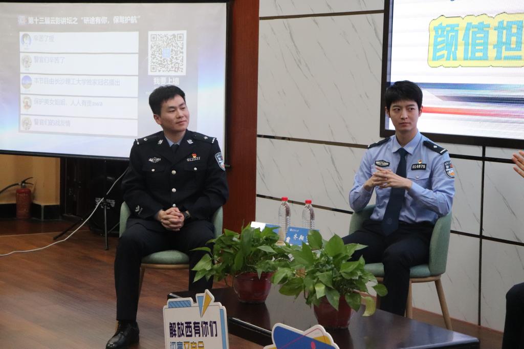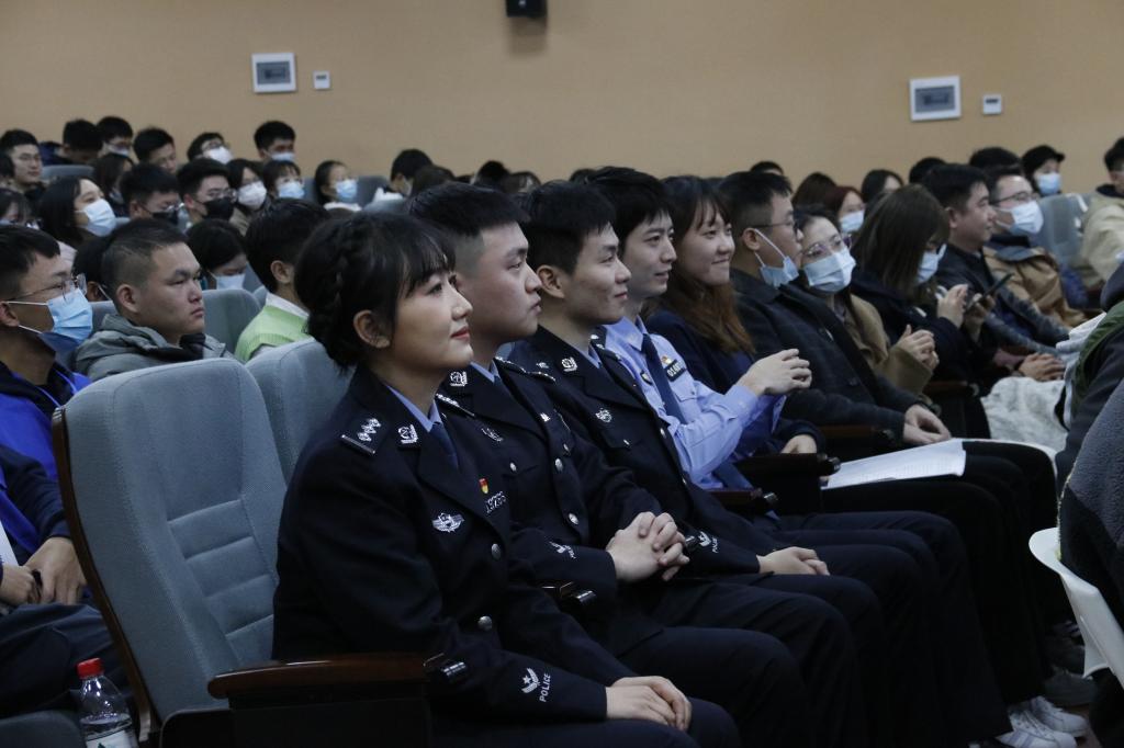 12月22日晚七点,《守护解放西》的“明星”警官及节目组应长沙理工大学校研究生团学组织的邀请做客云影讲坛,在金盆岭校区四教报告厅举行了一场“研途有你,保驾护航”主题讲座。来自长沙市坡子街派出所的陈慧、涂瀚文、欧阳睿乙、齐翔宇警官受邀出席,为现场200余名师生带来了一场别开生面的校园普法活动。