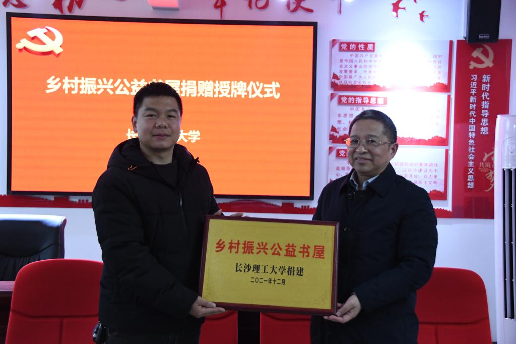 胡永乐一行还出席了雷竞技官网捐建的“乡村振兴公益书屋”揭牌仪式。今年10月,当研究生支教队反馈了驻村点中小学生渴望阅读而书籍资料匮乏的情况后,校研究生会与交通运输工程学院团委联合发起了“爱在长理,捐书筑梦”图书捐赠活动,共捐赠书籍1500余册,为当地建成了“乡村振兴公益书屋”。