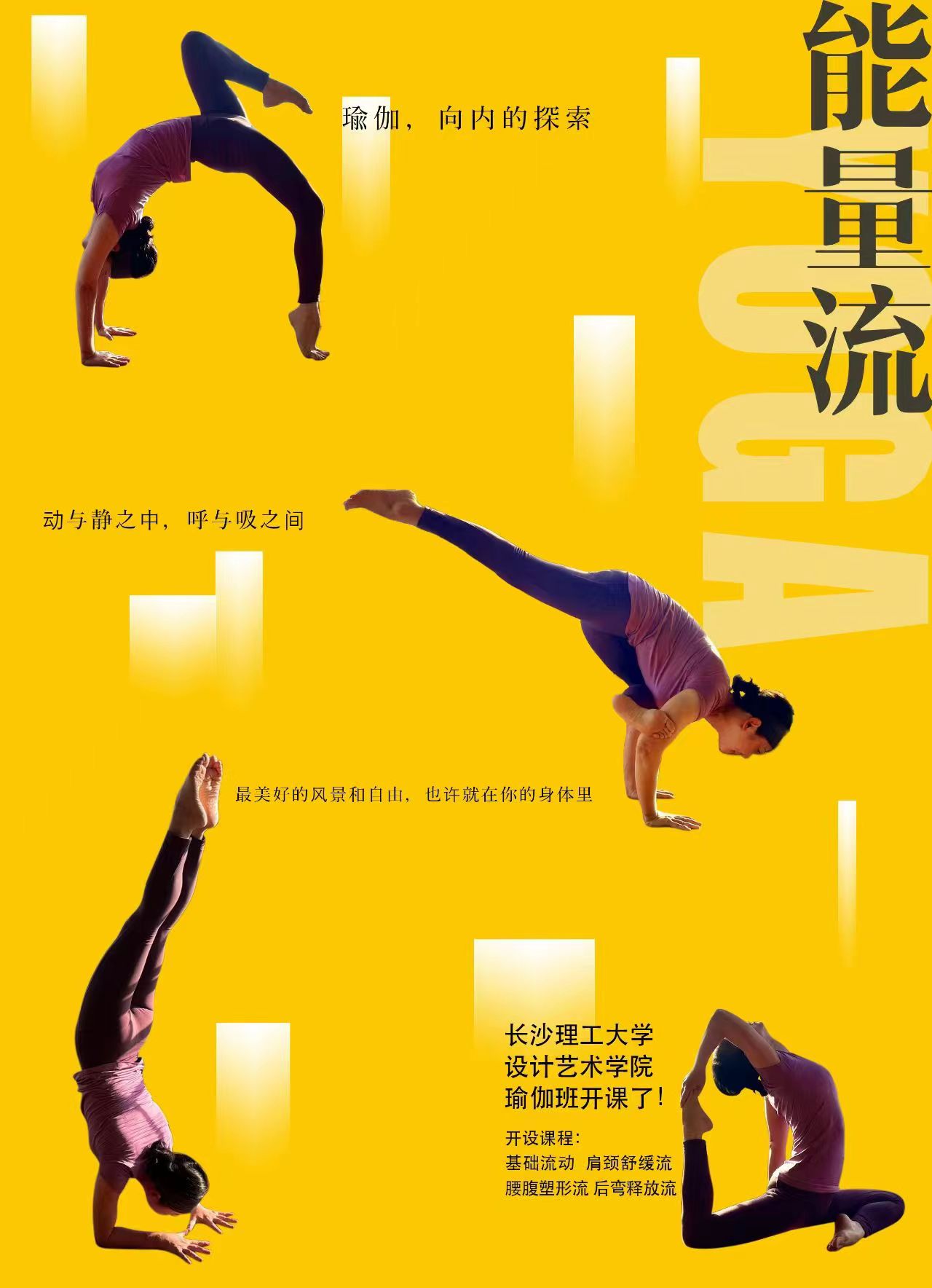 设艺女神瑜伽班。金秋十月伊始,由教职工自发组织,工会协助开办的瑜伽班在设计艺术楼B区六楼教职工之家顺利开班。为将瑜伽班办好、办精彩、办到位,工会设定了瑜伽工作室文明公约,并特邀学院刘缨老师为瑜伽班教练,每周二、四中午开放课程练习。瑜伽班开办前的宣传报道,吸引了广大教职工积极参与。开班后,课间氛围浓郁,教职工练习热情高涨,顺应了群众对幸福生活的美好期待。