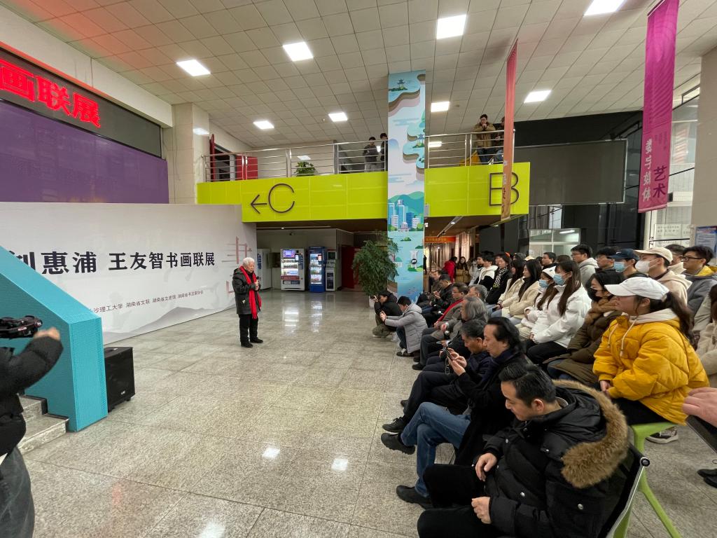 2021年12月31日上午10点,长沙理工大学设计艺术学院翰墨飘香,群贤毕至,刘惠浦、王友智书画联展在设计艺术学院展厅开幕。