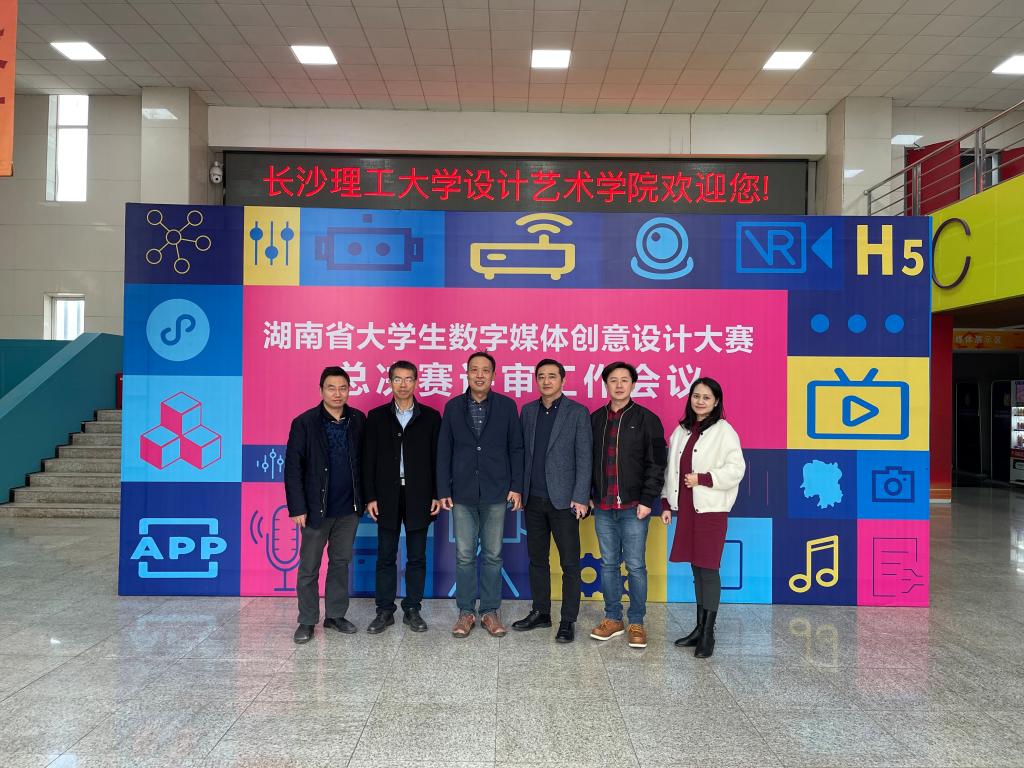 2021年11月26日-27日,2021年湖南省大学生数字媒体创意设计大赛决赛评审工作会议暨总决赛现场评审在长沙理工大学设计艺术学院举行。湖南省大学生数字媒体创意设计大赛组委会主任、长沙理工大学党委委员、副校长刘朝晖出席开幕式并致辞,并对大赛的基本情况进行了介绍,省内32所本科高校共推荐作品1200余件,现场限时赛21所本科高校推荐创作团队68支,各高校表现出极大的热情,此次评选出的作品代表着湖南省数字媒体专业的最高水平。湖南省大学生数字媒体创意设计大赛组委会副主任、长沙理工大学设计艺术学院院长王健代表学院感谢省内高校对本次大赛的支持。湖南省大学生数字媒体创意设计大赛组委会秘书长、长沙理工大学设计艺术学院副院长王龙对大赛宣讲、组稿、以及评审工作安排等相关工作做了介绍。本次大赛的专家组主要由省内专家组成,教育部动画与数字媒体教指委专家刘渊教授亲临现场指导工作。