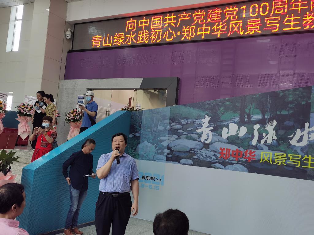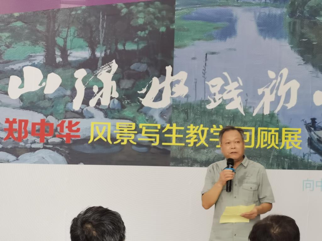 6月9日上午10点,向中国共产党成立100周年献礼“青山绿水践初心”郑中华风景写生教学回顾展,在长沙理工大学云塘校区设计艺术学院展厅开展。长沙理工大学副校长曾祥君、武汉理工大学博士生导师陈汗青、著名民间艺术研究学者左汉中在开幕式上分别致辞,原湖南省政协副主席刘晓宣布展览开幕。