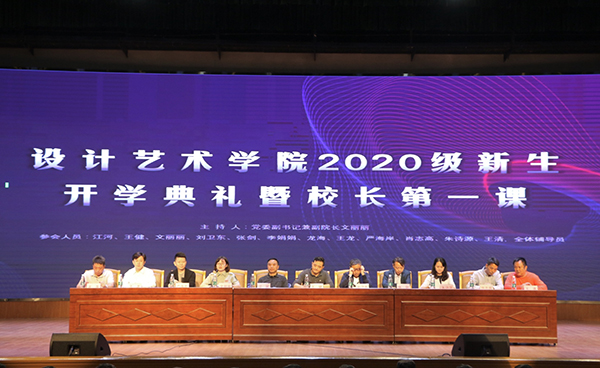 9月19日晚上,长沙理工大学设计艺术学院于金盆岭校区五教大礼堂成功举行设计艺术学院2020级新生开学典礼。副校长谈传生,院党委书记江河,院长王健,院党委副书记文丽丽,副院长刘卫东、张剑,院党委委员龙海、王龙、严海岸,系主任朱诗源、肖志高、王清以及学工办全体辅导员出席本次大会,学院2020级全体新生参加本次会议,会议由院党委副书记文丽丽主持。