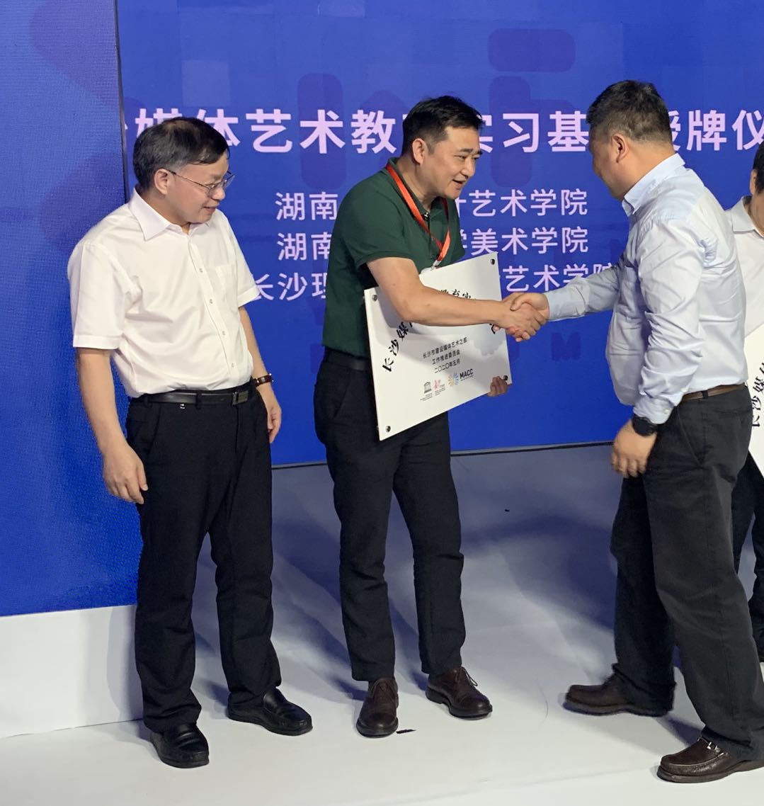 2020年5月20日,由中共长沙市委宣传部主办,市媒体艺术发展中心承办的“长沙媒体艺术教育实习基地”授牌仪式暨“C+C全球青年创新伙伴关系计划”路演在百年工业文化遗存地裕湘纱厂举行。长沙市委宣传部领导、相关政府部门代表、高校代表,企业代表,部分青年代表等参加活动。王健院长代表长沙理工大学设计艺术学院参加了授牌仪式。